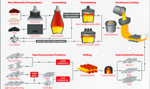 Muncul pertanyaan, dari mana baja berasal dan bagaimana cara membuatnya hingga memiliki spesifikasi tertentu dan dapat digunakan untuk membuat komponen-komponen dari suatu kontruksi. Baja tersedia di alam namun masih dalam bentuk bijih besi kotor yang bercampur dengan mineral, tanah dan bebatuan. Bijih besi tersebut ditambang untuk diekstrak. Proses penambangannya umumnya terbagi dalam beberapa langkah. Yang pertama adalah eksplorasi untuk mencari dan mengidentifikasi cadangan bijih besi, sebab tidak semua tanah kaya akan bijih besi. Tahap ini melibatkan survei geologi, pengambilan sampel tanah, dan pengeboran inti untuk menentukan lokasi, ukuran, dan kualitas deposit bijih. Tahap selanjutnya setelah cadangan bijih besi ditemukan adalah pembuatan rencana penambangan secara terperinci meliputi metode ekstraksi, peralatan yang dibutuhkan, dan strategi pengelolaan lingkungan serta keselamatan. Pada tahap penambangan bijih besi, ada dua metode yang bisa dilakukan, yaitu penambangan penambangan terbuka (Open-Pit Mining) di mana lapisan tanah dan batuan penutup (overburden) diangkat untuk mengambil bijih besi di bawahnya mesin-mesin berat. Metode kedua adalah penambangan bawah tanah (Underground Mining) yang digunakan untuk mengambil deposit bijih yang berada sangat dalam di bawah permukaan. Metode ini memanfaatkan terowongan dan sumur untuk mengakses bijih. Bijih besi hasil penambangan mengandung banyak kotoran. Oleh karena itu, bijih besi harus dibersihkan untuk meningkatkan kadar besi (Fe). Proses ini meliputi penghancuran (crushing) untuk memperoleh bijih besi dengan ukuran yang lebih kecil kemudian digiling (grinding) menjadi partikel halus. Selanjutnya bijih besi dipisahkan dengan berbagai pengotor menggunakan magnetik separator, flotasi, atau pemisahan secara gravitasi. Untuk memudahkan penyimpanan dan pemindahan pada saat peleburan maka bijih besi di buat menjadi pelet dengan cara disinter.